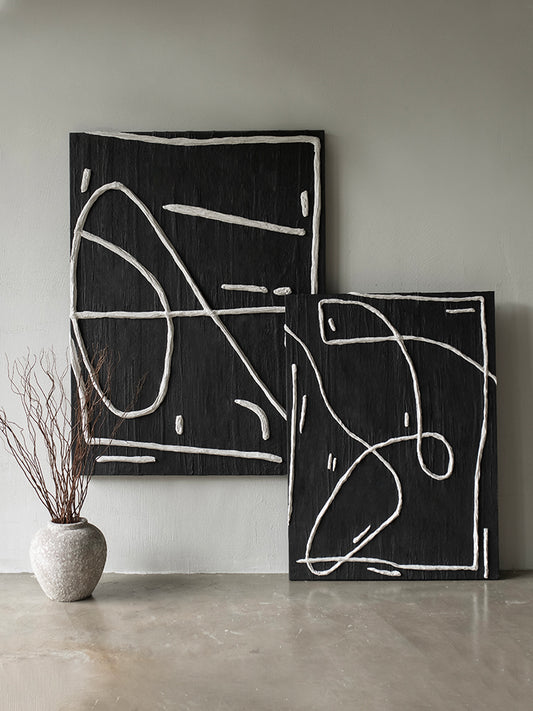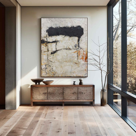 Abstract Black and White Minimalist Oil Painting for Modern Home Decor