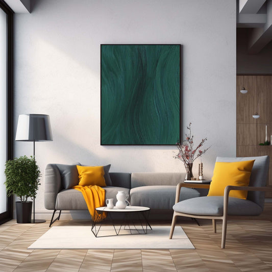 Abstract Green Waves - Elegant Minimalist Oil Painting for Modern Decor