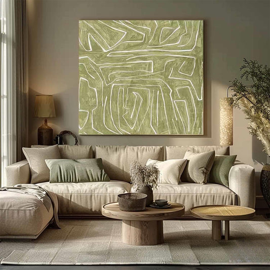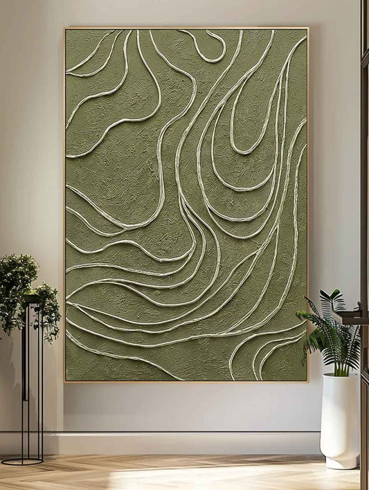 Abstract Green Lines Minimalist Oil Painting for Modern Home Decor