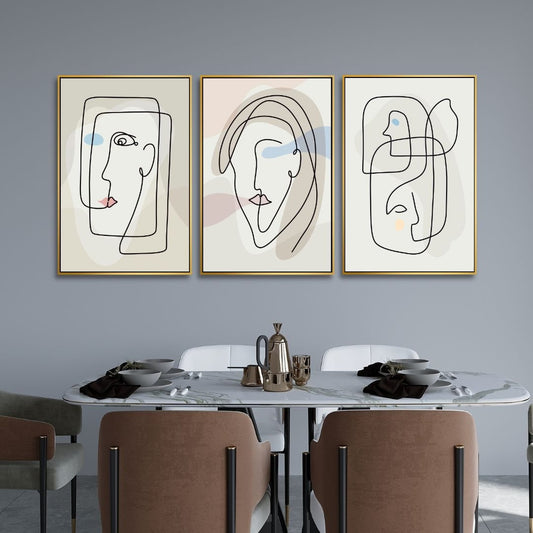 Abstract Line Art Faces - Modern Minimalist Oil Painting for Contemporary Decor