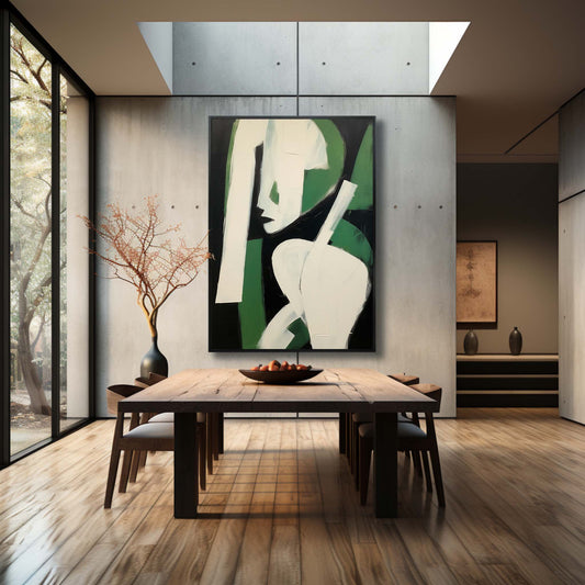 Abstract Green Figure: Modern Minimalist Oil Painting for Contemporary Art Lovers