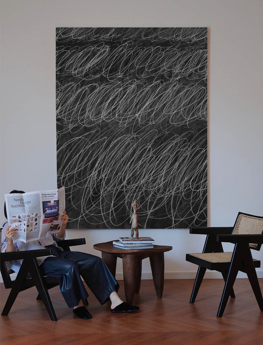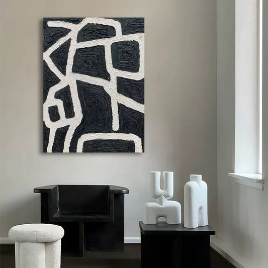 Abstract Black and White Oil Painting: Modern Minimalist Art for Contemporary Spaces