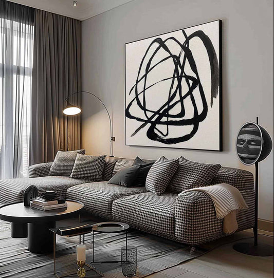 Abstract Minimalist Black Line Art Painting for Contemporary Home Decor