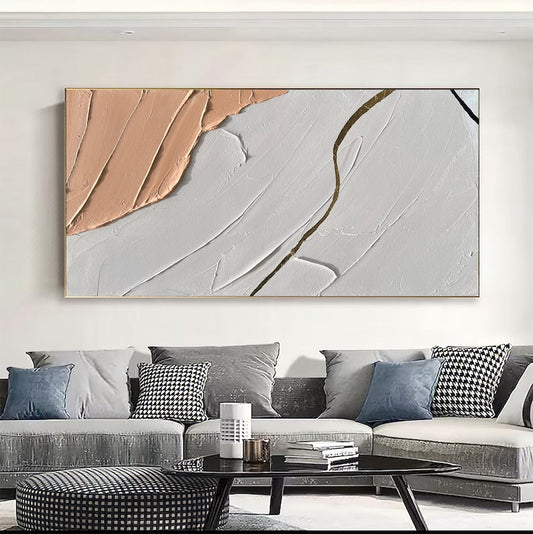 Abstract Grey and White Oil Painting for Modern Minimalist Home Decor