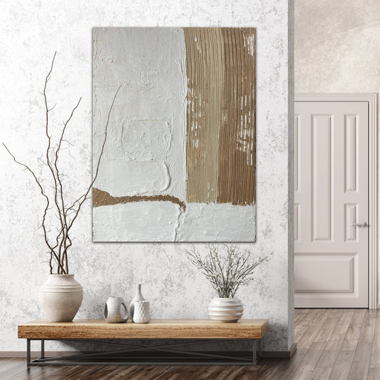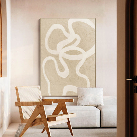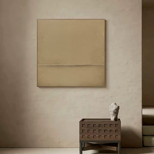 Serene Minimalist Beige Abstract Oil Painting for Modern Home Decor