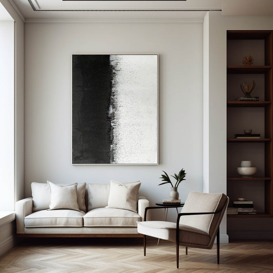 Sleek Minimalist Black and White Abstract Oil Painting for Modern Home Decor