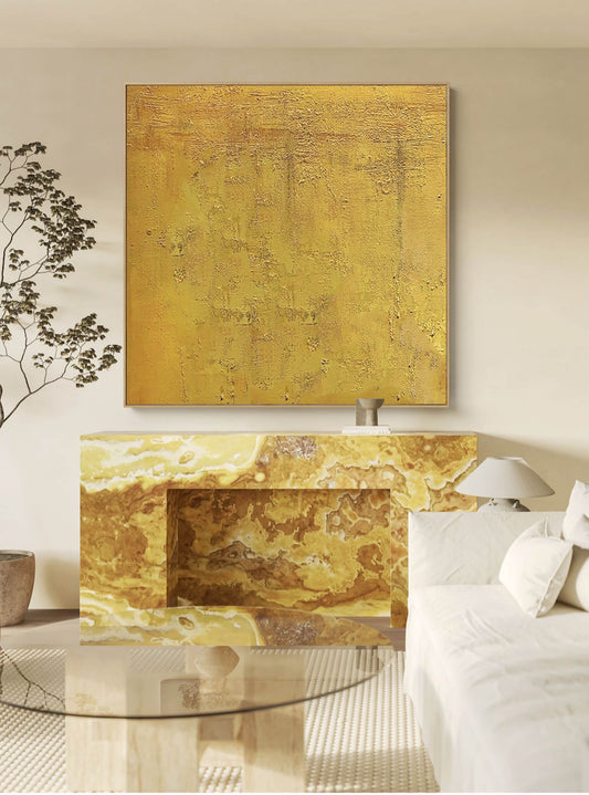 Stunning Textured Gold Minimalist Abstract Oil Painting for Modern Decor