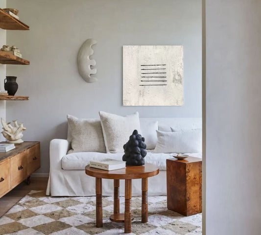 Serene Wabi-Sabi Abstract Oil Painting for Minimalist Home Decor