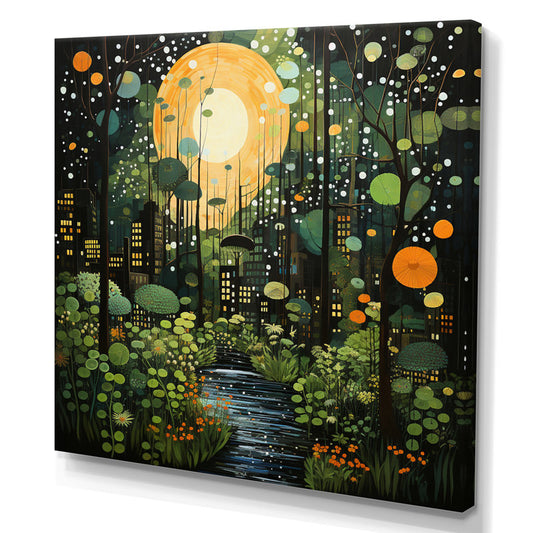Urban Jungle Serenity: Vibrant Green & Yellow Oil Painting for Modern Decor