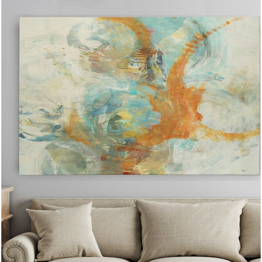 Vibrant Abstract Turquoise and Orange Oil Painting for Modern Home Decor
