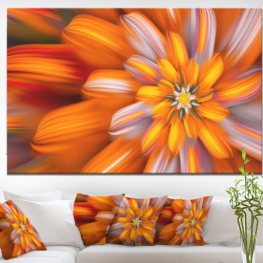 Vibrant Orange Fractal Flower Oil Painting for Modern Home Decor