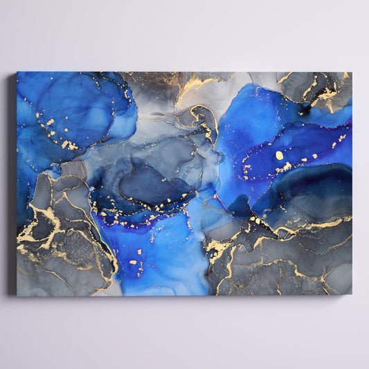 Luxury Blue and Black Abstract Fluid Art Canvas Painting for Modern Decor