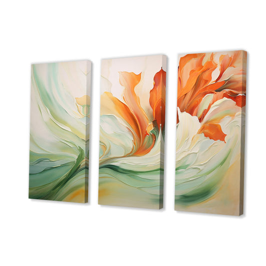 Vibrant Green and Orange Floral Triptych Oil Painting for Modern Decor