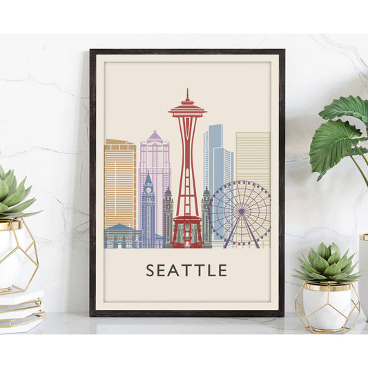 Seattle Cityscape Oil Painting, Washington Wall Art, Modern Urban Decor