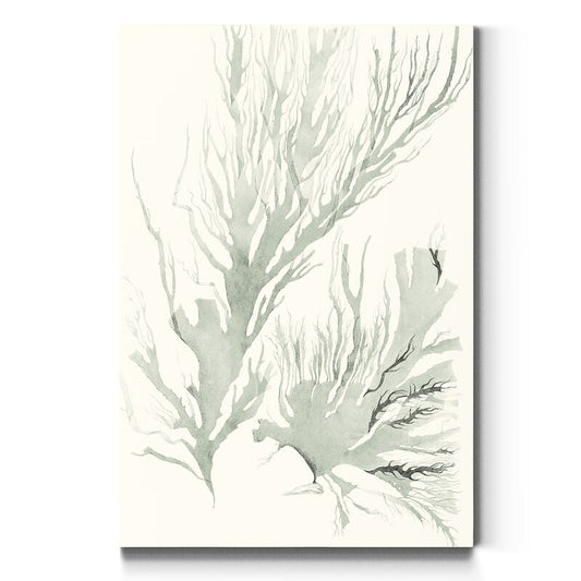 Serene Sage Green Seaweed Abstract Oil Painting for Modern Home Decor