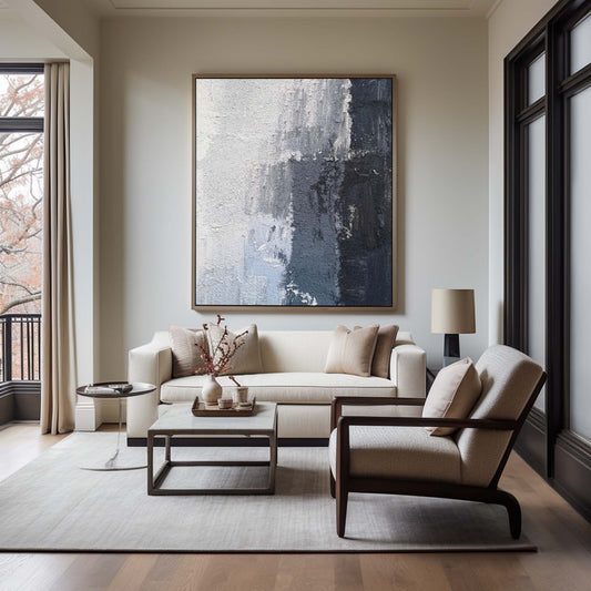 “Contemporary Blue and White Abstract Oil Painting for Modern Home Decor”