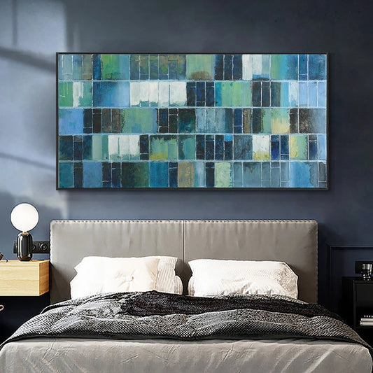 Abstract Blue and Green Tunnel Oil Painting for Modern Home Decor
