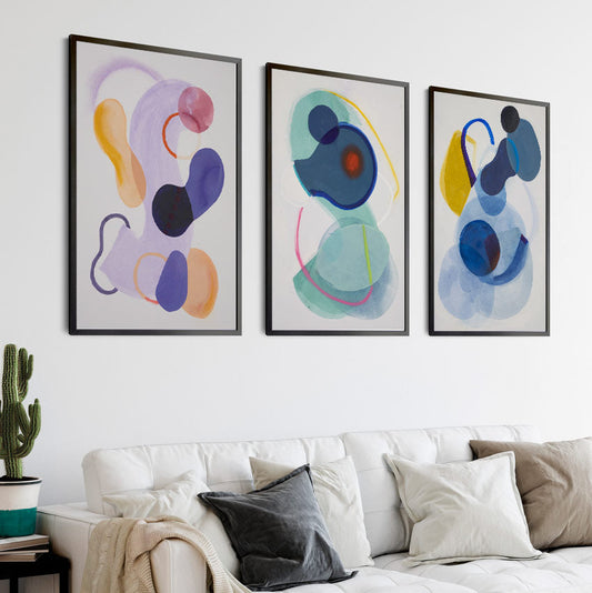 Abstract Blue and Yellow Oil Painting for Modern Living Room Decor