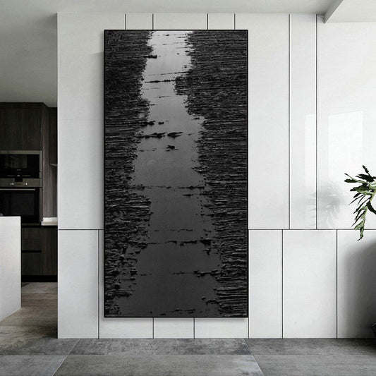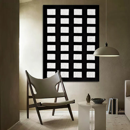 Abstract Black and White Oil Painting: Modern Minimalist Art for Contemporary Spaces