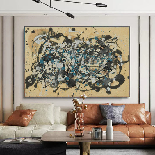 Abstract Blue and Yellow Oil Painting with Modern Artistic Expression