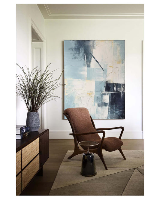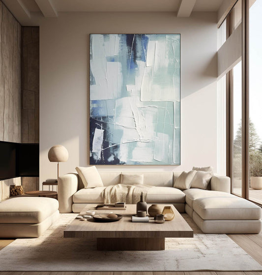 Abstract Blue and White Oil Painting for Modern Home Decor