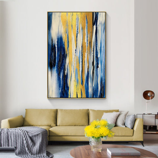 Abstract Blue and Gold Oil Painting for Modern Home Decor