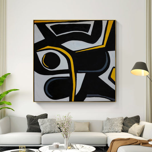 Abstract Black and White Oil Painting for Modern Minimalist Home Decor