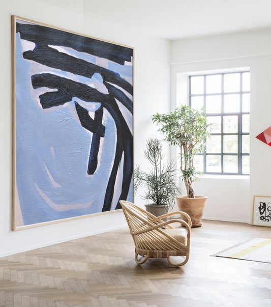 Abstract Blue and Black Oil Painting for Modern Art Decor