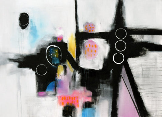 Abstract Black and White Oil Painting with Colorful Elements for Modern Decor
