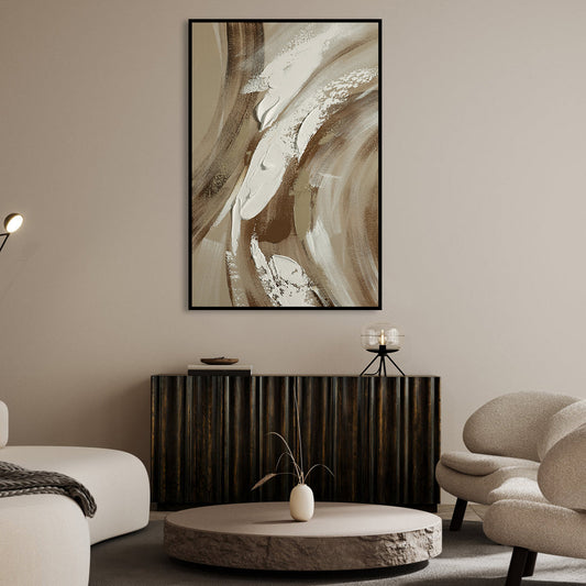 Abstract Beige Landscape: Elegant Oil Painting for Modern Home Decor