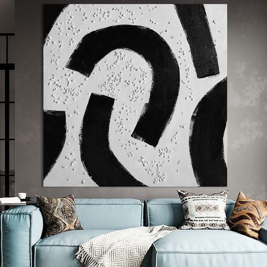 Abstract Black and White Geometric Oil Painting for Modern Home Decor
