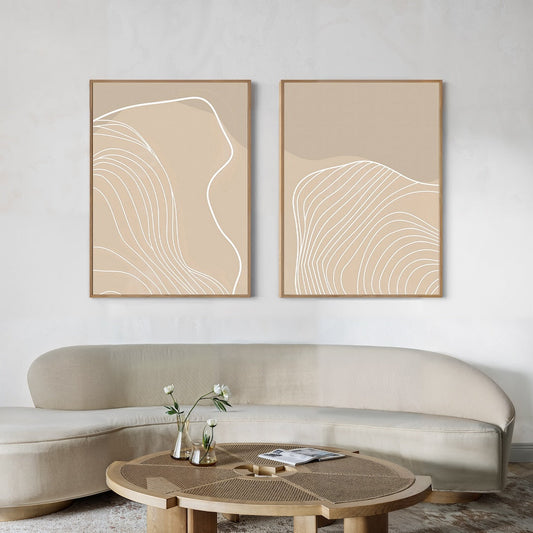 Abstract Beige Contour Line Art Pair for Modern Home Decor