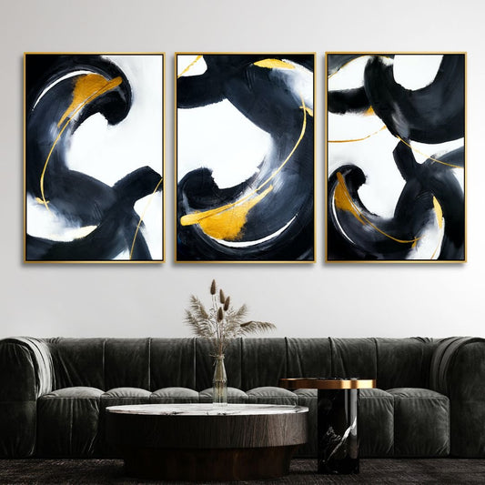 Abstract Black and Gold Oil Painting Set for Modern Home Decor