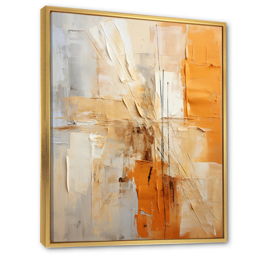 Abstract Oil Painting in Vibrant Orange and Beige for Modern Home Décor