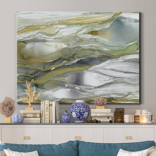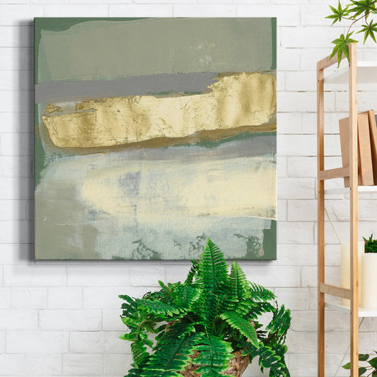 Elegant Sage and Gold Abstract Oil Painting for Modern Home Decor