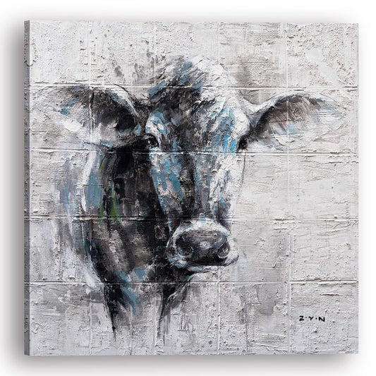 Elegant Cow Portrait Oil Painting for Modern Home Decor