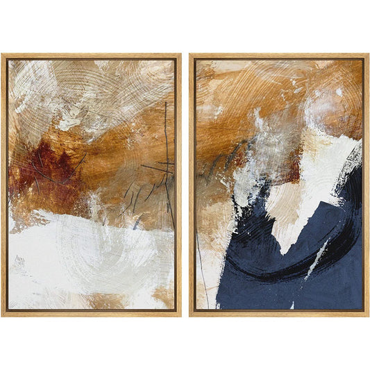 Blue and Brown Abstract Oil Painting Set - Grunge Graffiti Art for Modern Decor