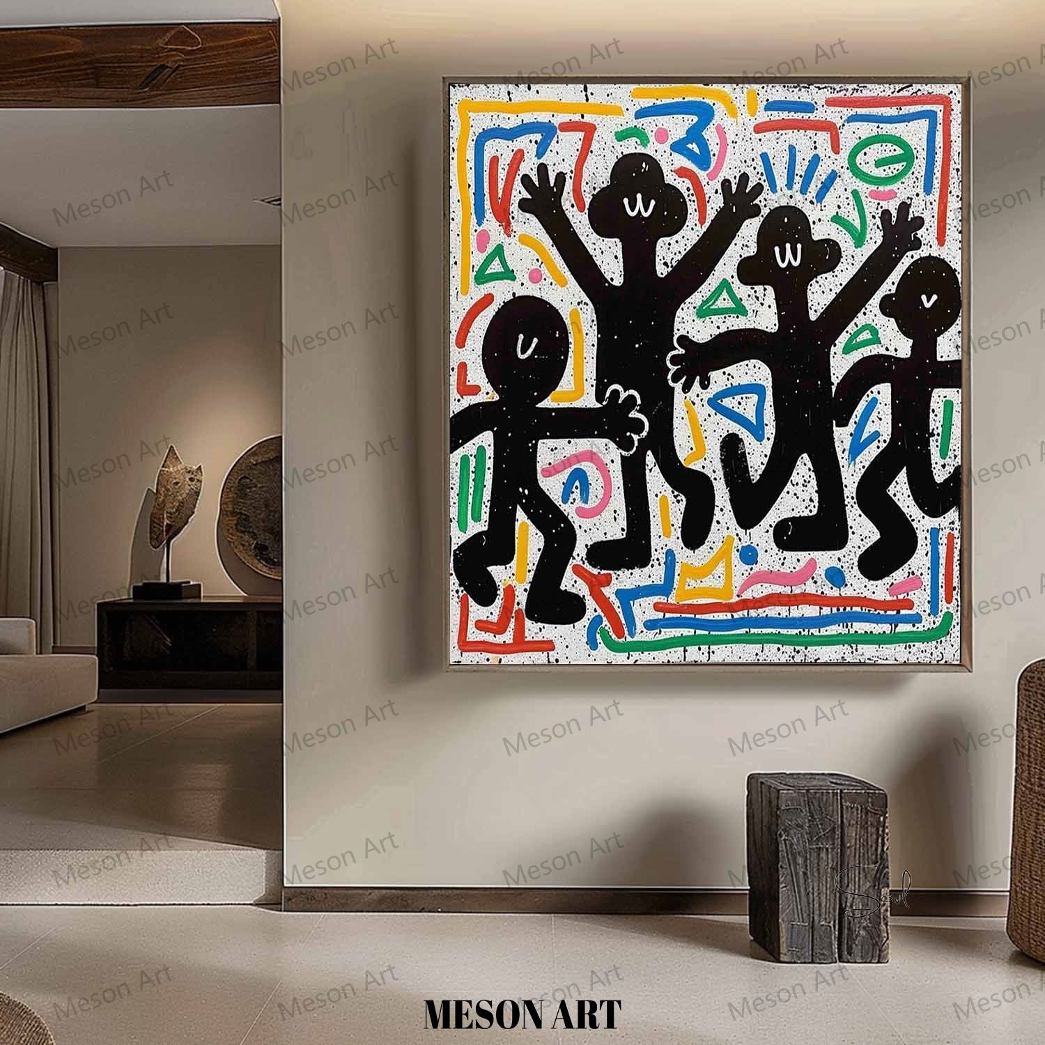 Colorful Abstract Expressionism: Vibrant Graffiti-Inspired Oil Painting for Modern Decor