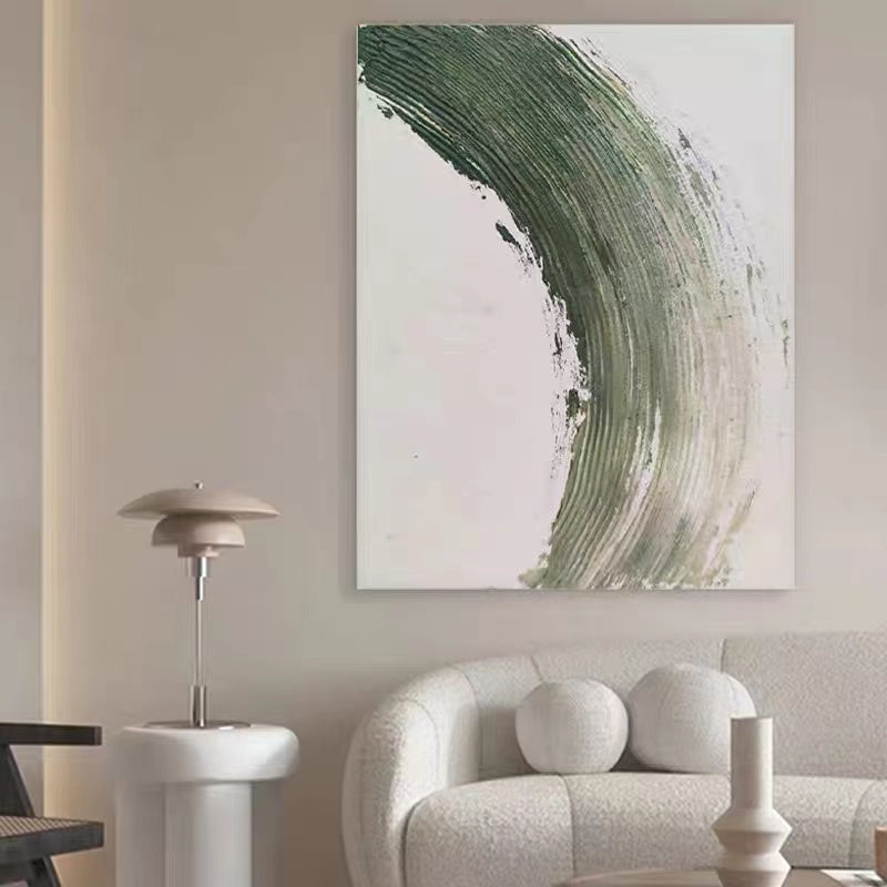 Abstract Green Streak Minimalist Oil Painting