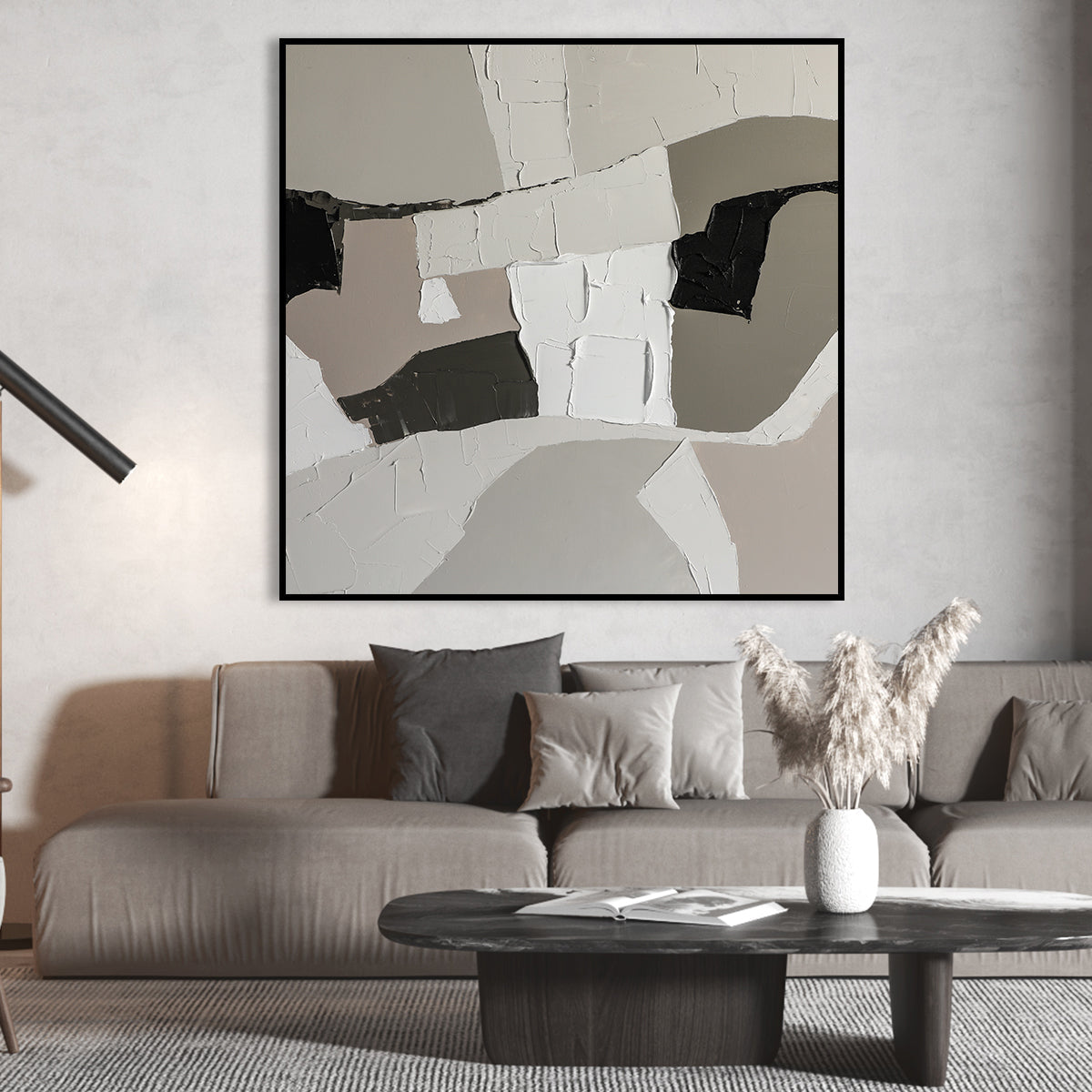 Contemporary Abstract Oil Painting in Neutral Tones for Modern Home Decor
