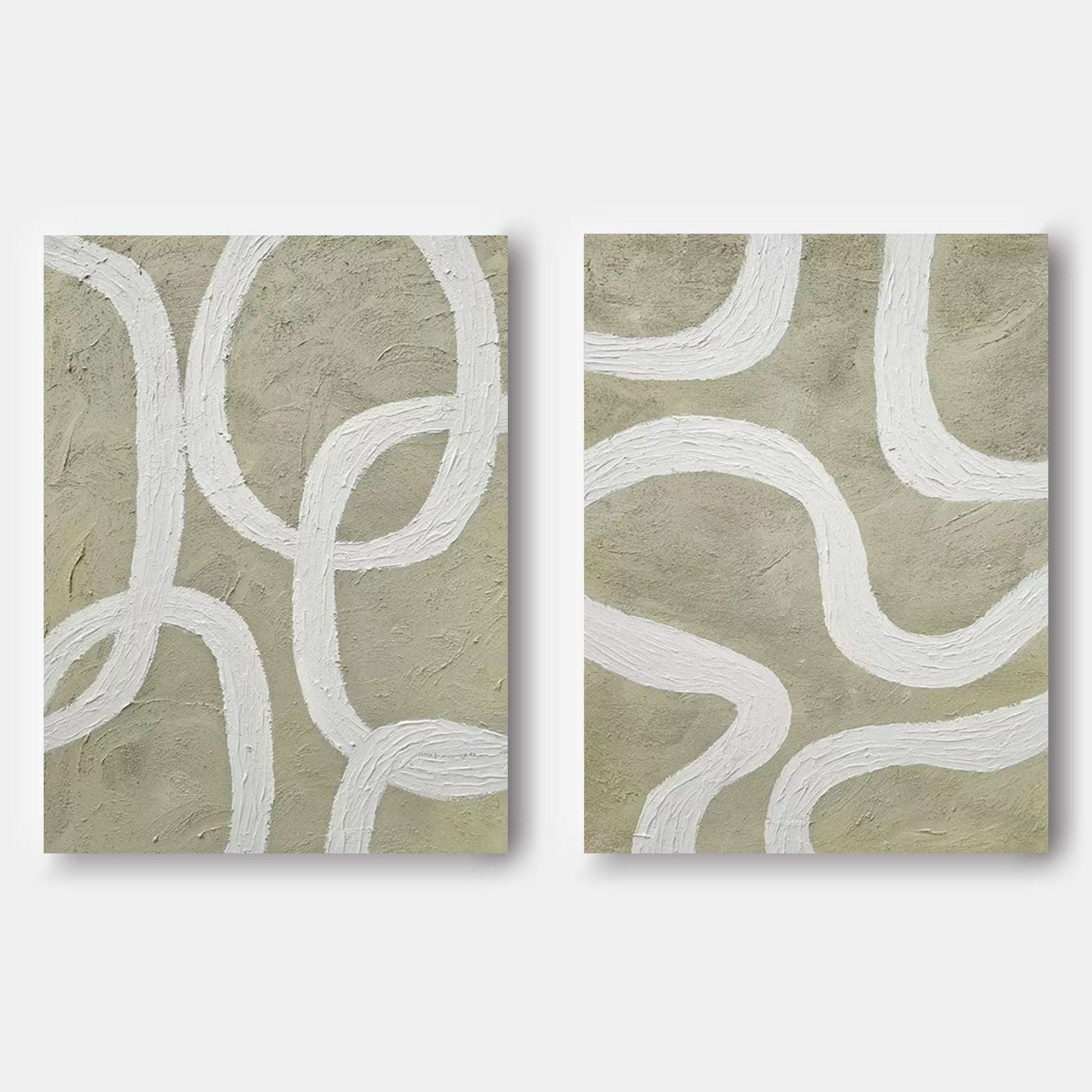 Minimalist Abstract Oil Painting Duo for Modern Home Decor