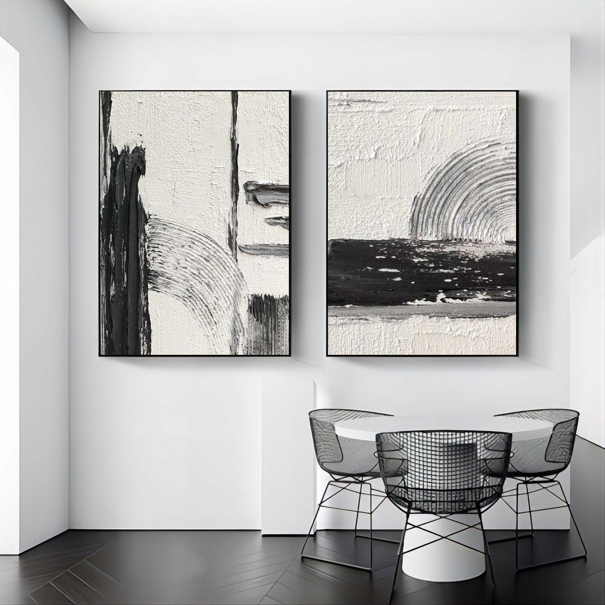 Contemporary Black and White Abstract Oil Painting Duo for Modern Interiors