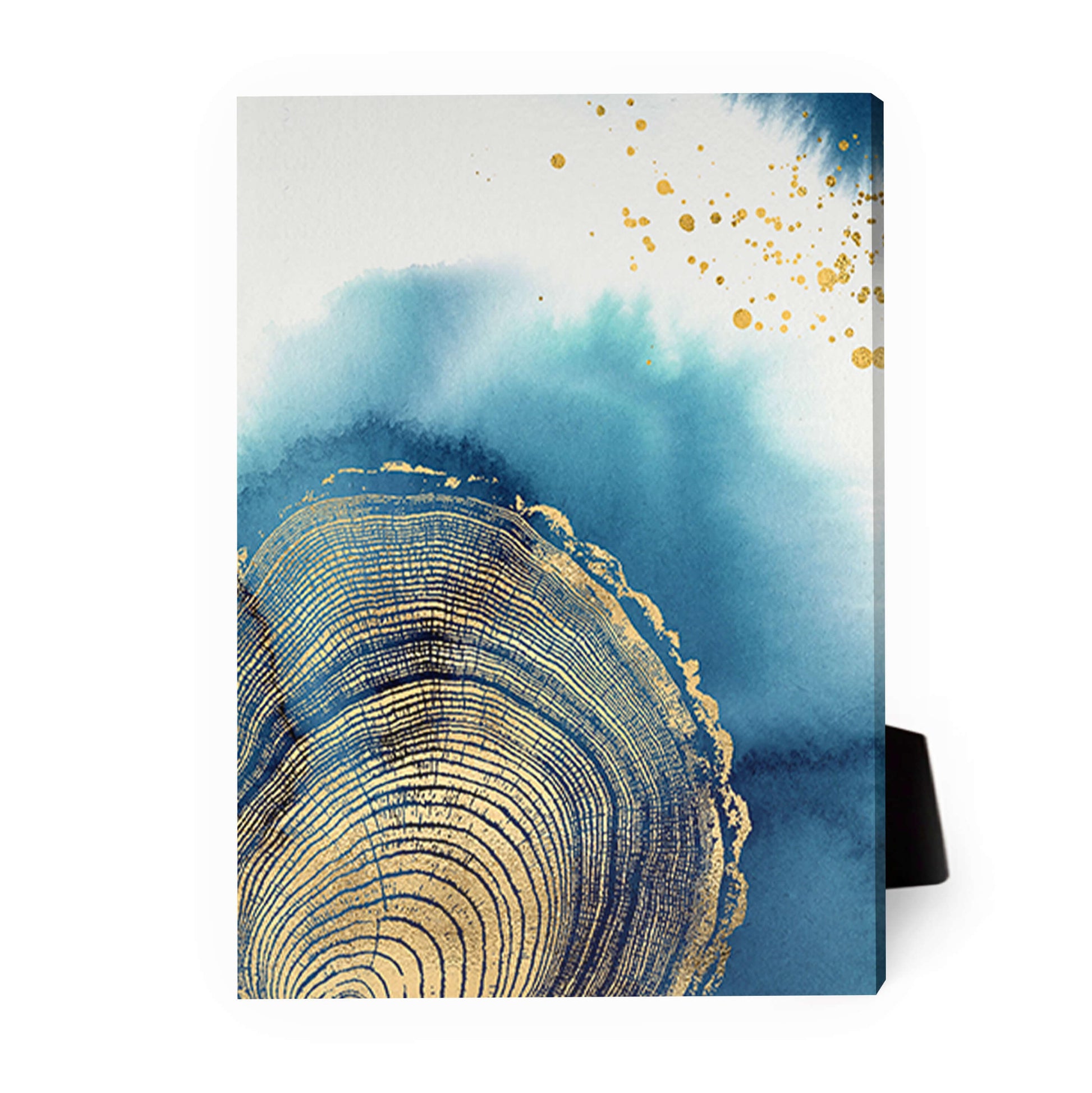 Blue Abstract Wood Grain Oil Painting for Modern Wall Decor