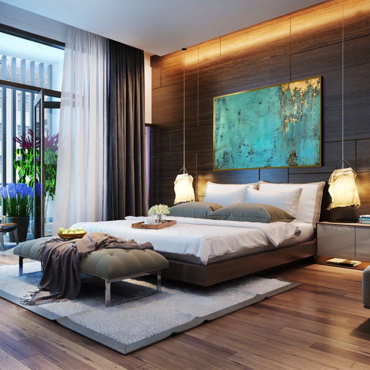 Discover a stunning bold abstract oil painting in teal with luxurious gold accents, perfect for enhancing your modern home decor. This eye-catching artwork adds a vibrant touch to any space, making it a must-have for art lovers and interior design enthusiasts. Transform your living area with this unique piece that embodies elegance and creativity. Ideal for stylish homes, this teal and gold masterpiece will inspire and captivate. Shop now to elevate your interior aesthetic!