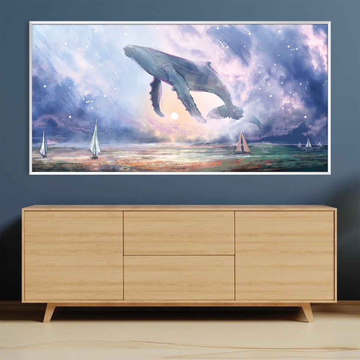 Majestic Whale in Cosmic Skies - Stunning Oil Painting for Ocean Lovers