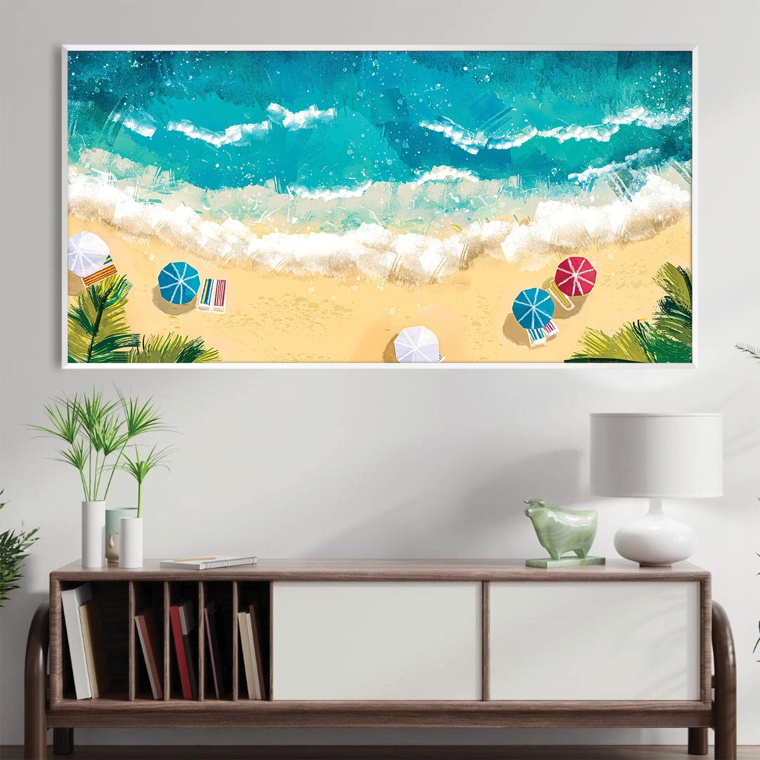 Vibrant Coastal Oasis Oil Painting for Artful Beach-Themed Decor