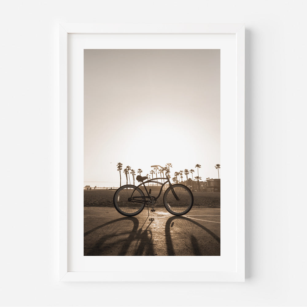 Serene Sunset: Classic Bicycle by the Beach with Palm Trees
