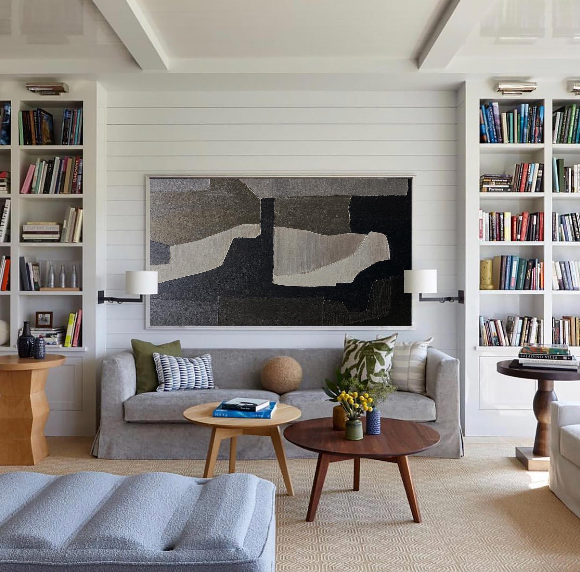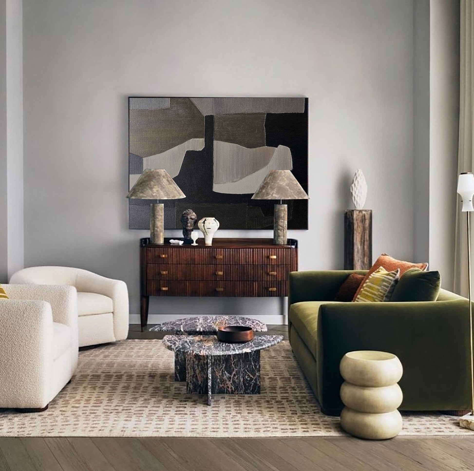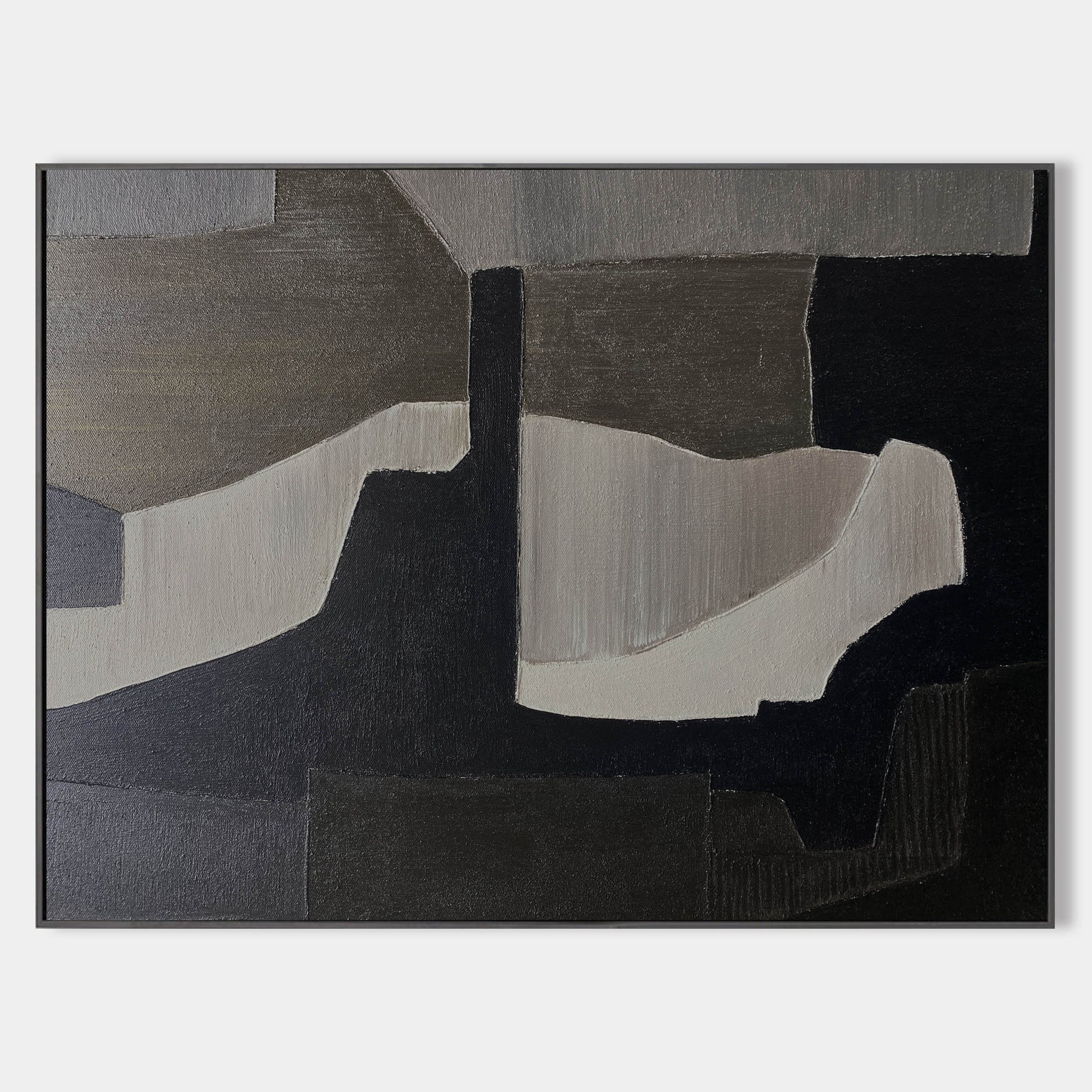 Chic Black and Grey Abstract Oil Painting for Modern Art Decor