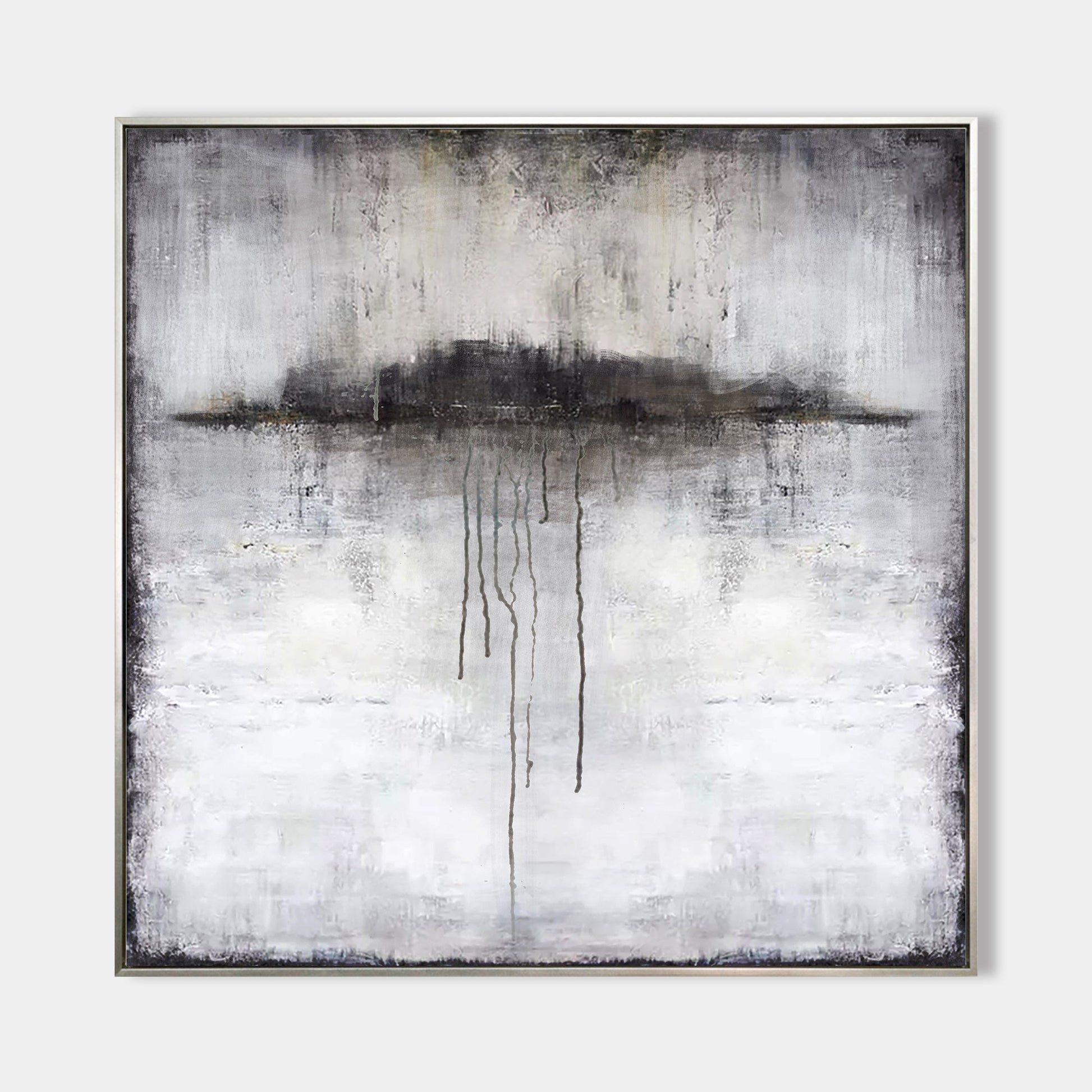 Elegant Black and White Abstract Ocean Landscape Oil Painting for Modern Decor