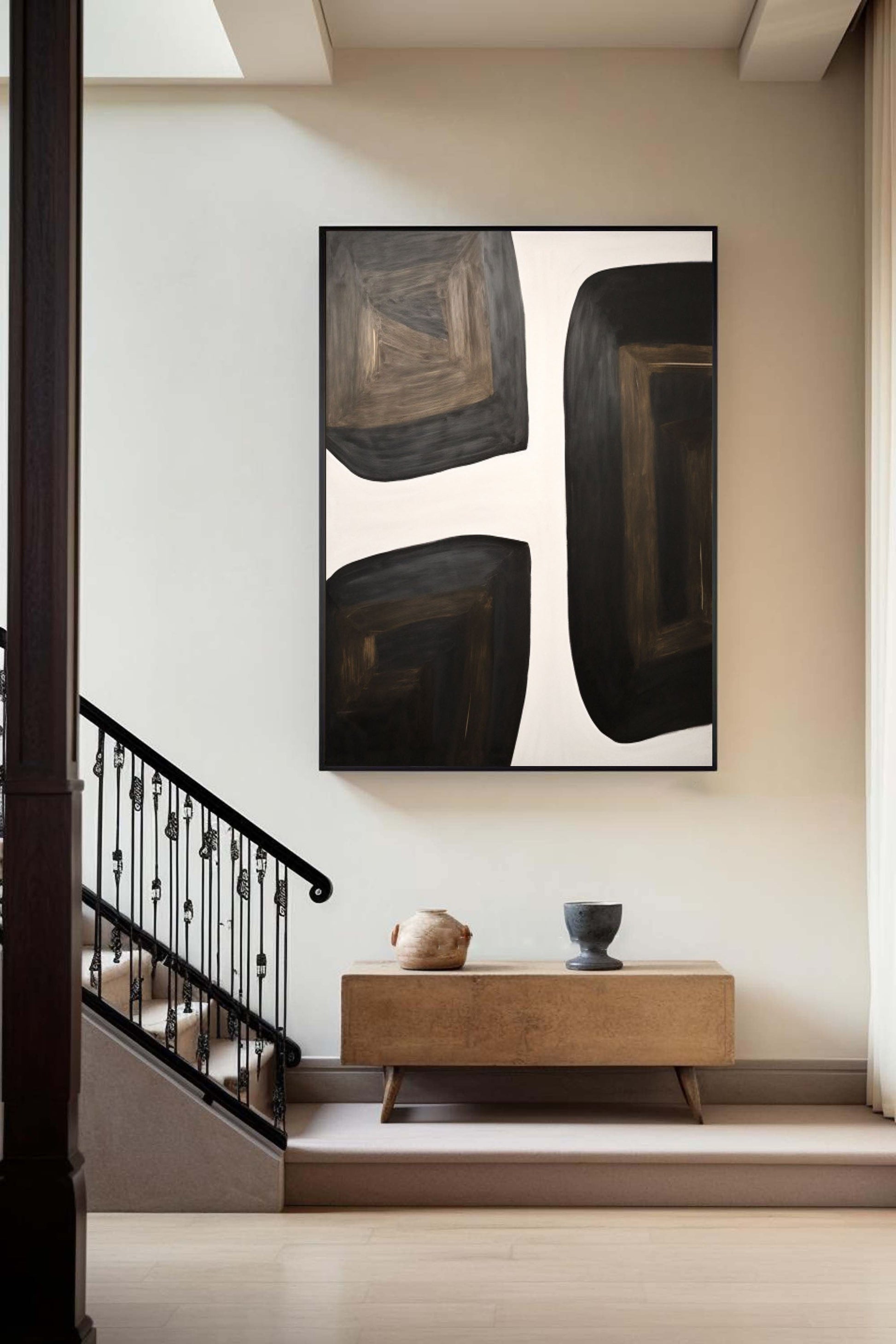 Modern Black and White Geometric Oil Painting for Contemporary Home Decor